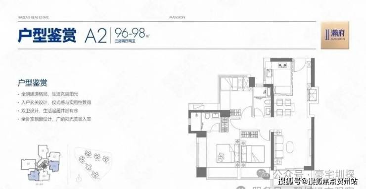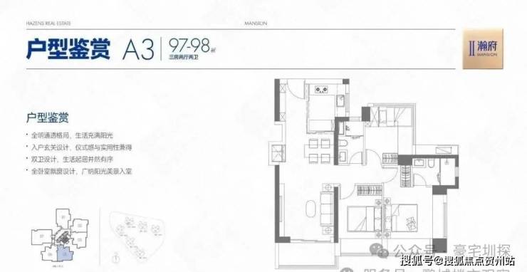 96 - 98㎡三房两厅两卫(A1/A2/A3 户型)