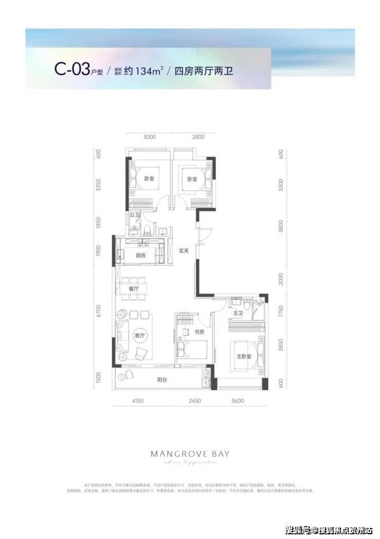 G01户型112平3房2厅2卫:同样拥有客厅、餐厅连通阳台的设计,自然采光充足;全屋飘窗,尽享超大采光面;主卧独立卫生间;动静干湿分离。C03户型134平4房2厅2卫:方正紧凑格局,合理精研每一寸空间;独立私家书房;约6.6米宽阔景观阳台;客厅、餐厅连通阳台;主卧飘窗。