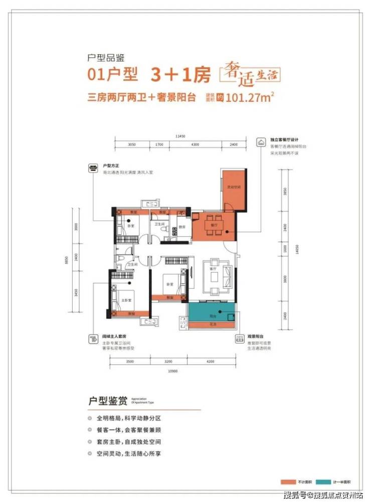 (1)01户型(101㎡):四房两厅两卫,南北通;【售罄】