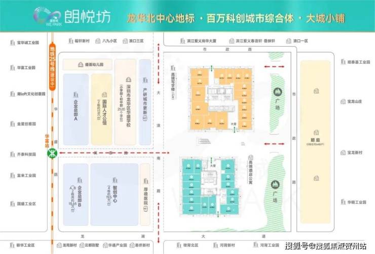 深圳龙华双重点项目近85万㎡盛荟城WE-PARK集7栋约40万㎡产业办公楼(规划企业年产值100亿+元,规划提供3万+人产业人才)+6栋约16.5万㎡住宅/酒店/公寓+1所中小学(约2520个学位)+1所幼儿园(约270个学位)等丰富业态于一体,加上厚德医院、待城市更新M1产研地块,近百万㎡的科创大城为商业构建全天候消费生态!