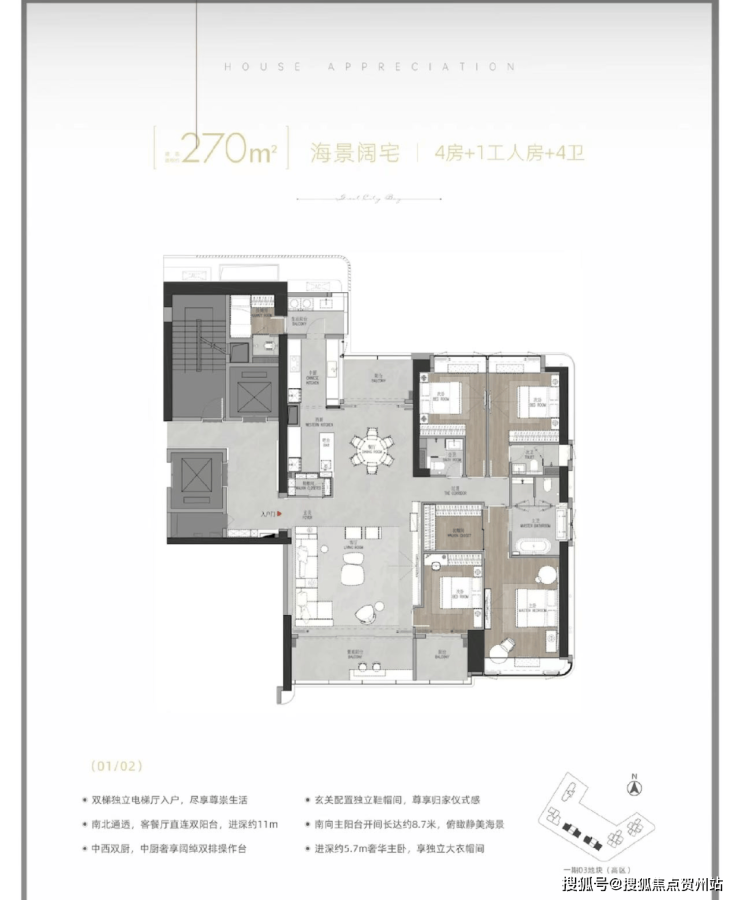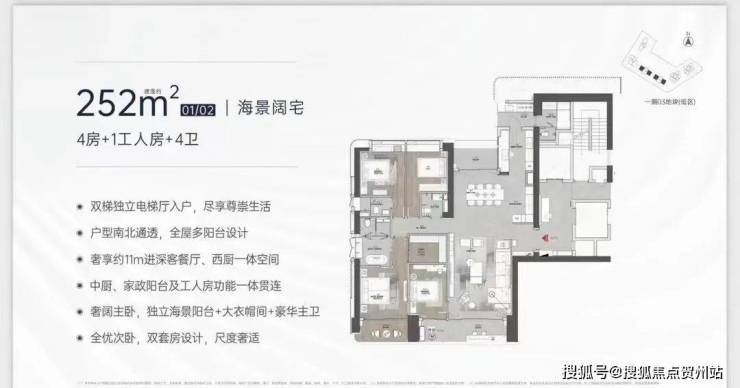 183㎡的4房2厅3卫,双梯独立电梯厅入户;西南向,