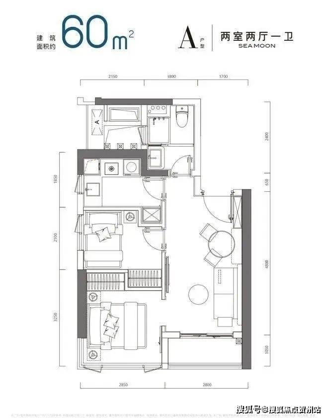 “望海玥”项目首批389套公寓,35层高,户型36-60㎡,1-2房,精装修。