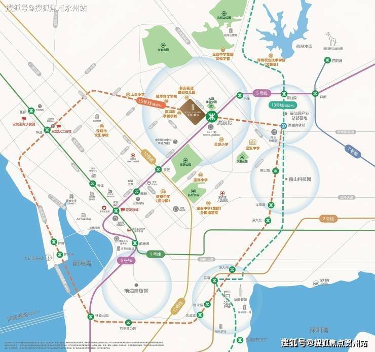 地铁15号线:起于西乡、终至前海,串联南山西丽、科技园、大铲湾片区,打造前海内环黄金圈。