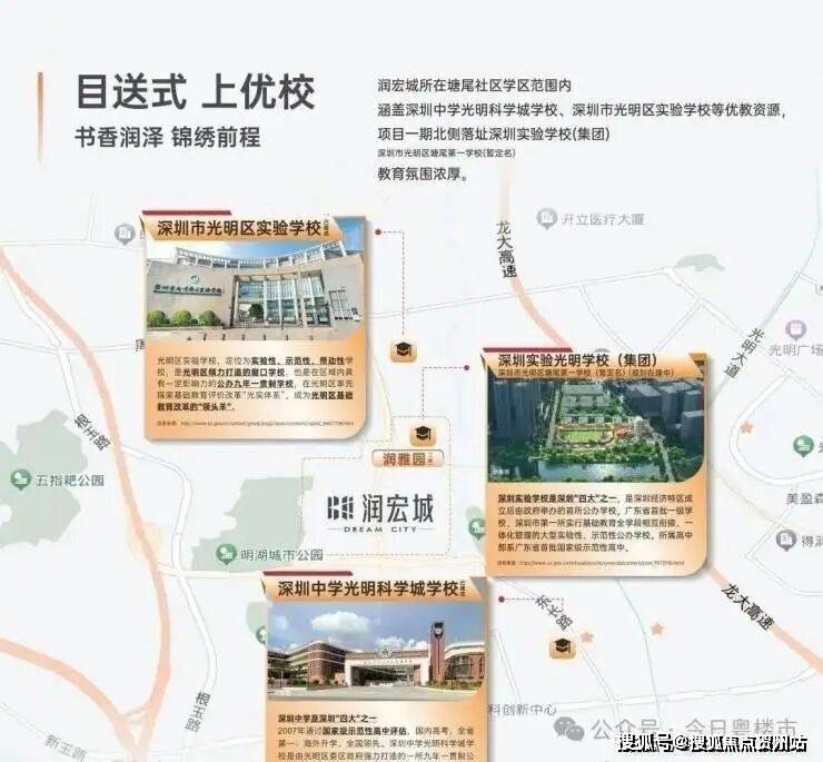 教育配套:项目自带18班幼儿园,周边规划有3所九年一贯制学校,其中光明扛把子,深圳实验学校分校仅一路之隔,周边还有深圳中学光明科学城学校。是整个深圳都非常稀缺的双一流名校学区房。