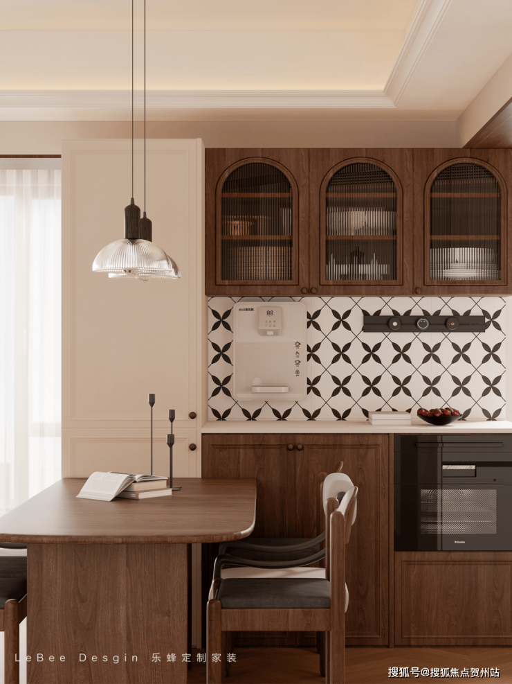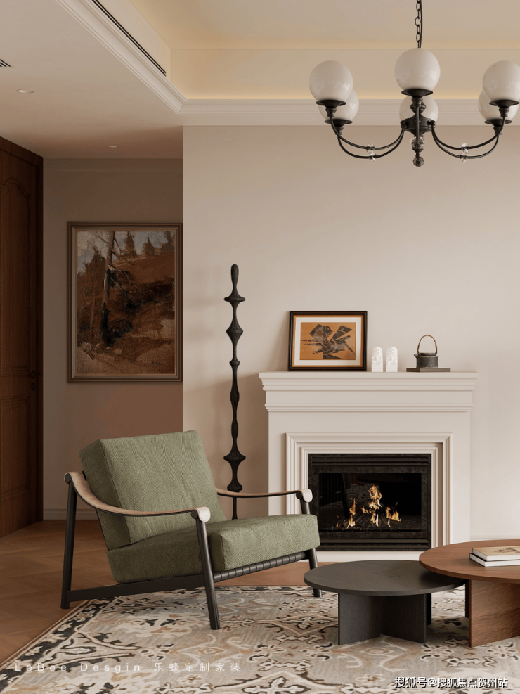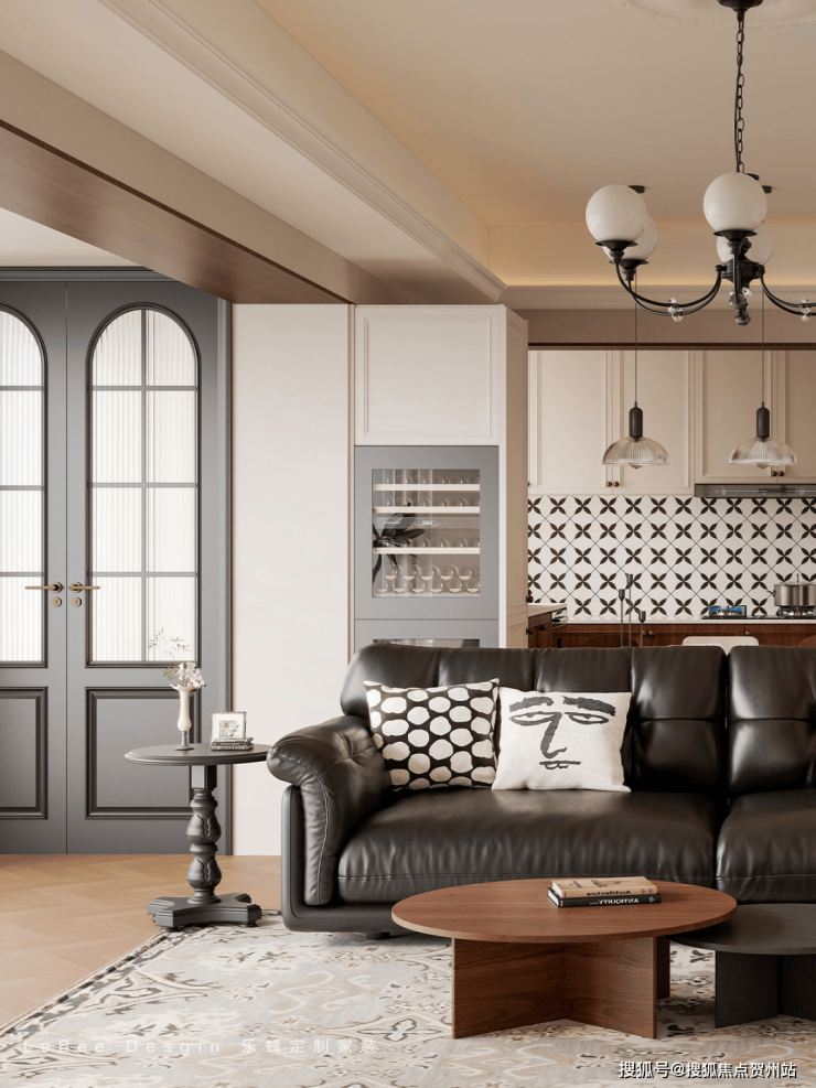 胡桃木柜体、弧形门洞、中古家具和精致的法式吊灯点缀空间,处处散发着一股怀旧复古气质🎨