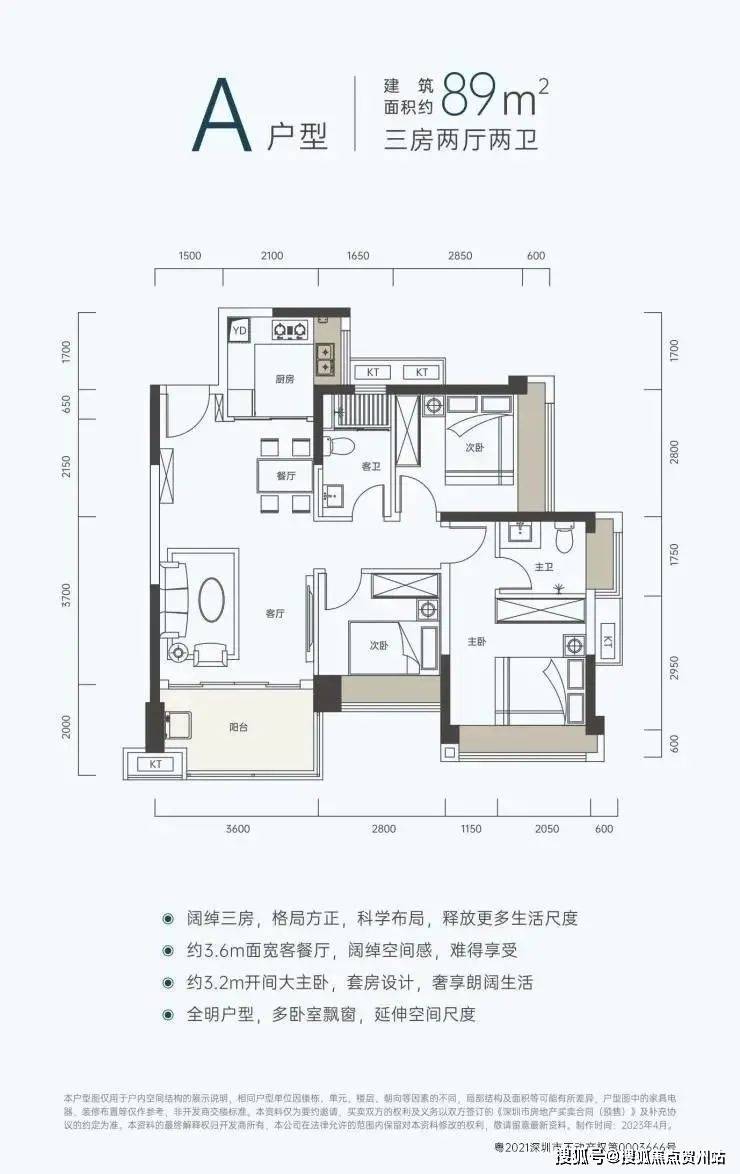 (2)89㎡三房两卫(朝东、朝南),折后总价【206-244万】,首付31万起,月供7400起;