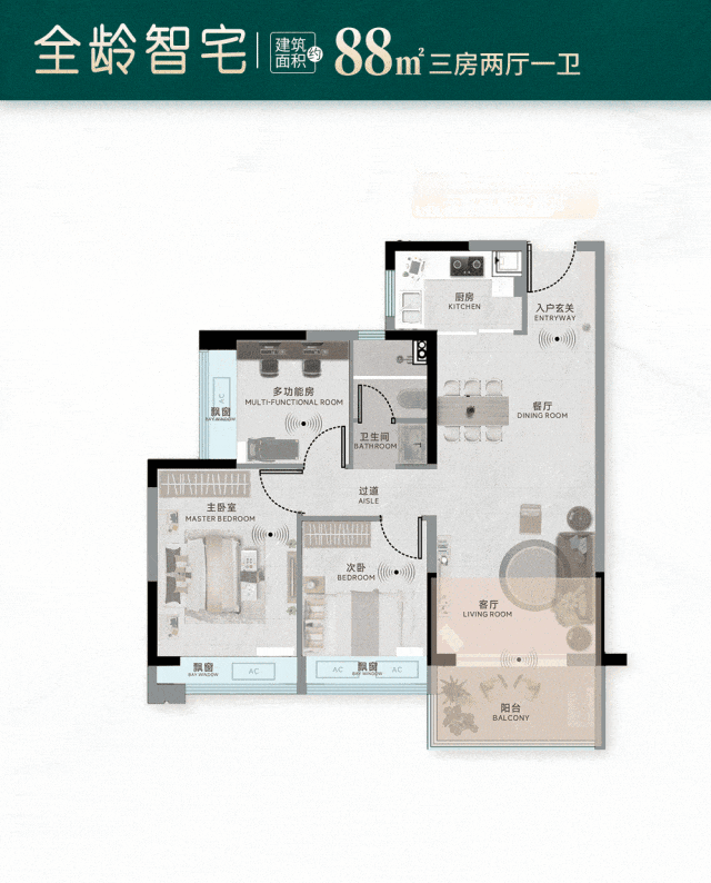 丨建面约88㎡三房