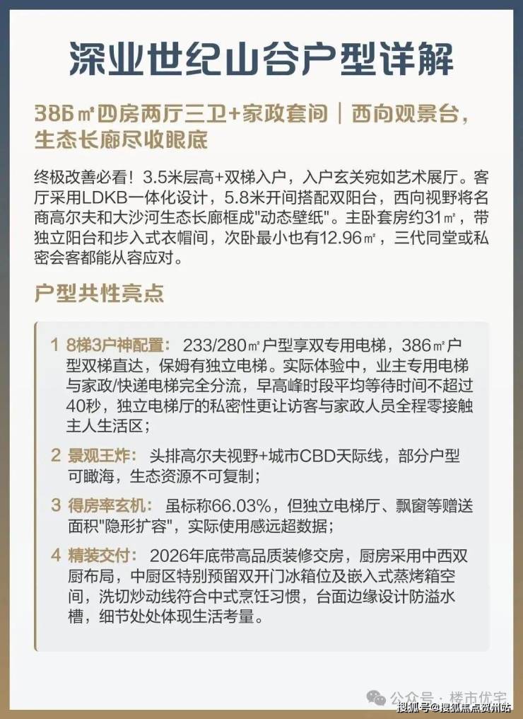 深业世纪山谷世家- 启幕城芯繁华 ��主力建面约233-386㎡3-4房纯粹大平层,3.5米层高8梯3户 极致的生态资源