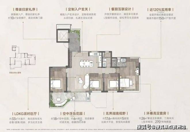 而「岛颂」以市场首现的约120%实用率(不含电梯前室),让约117㎡实际使用面积直逼约150㎡——相当于“白送”约33㎡。