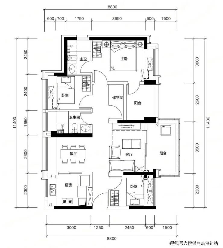 三、109㎡4房2厅2卫户型: