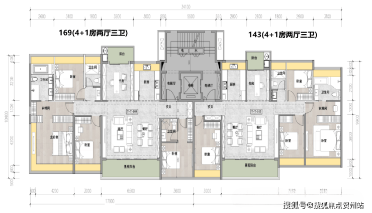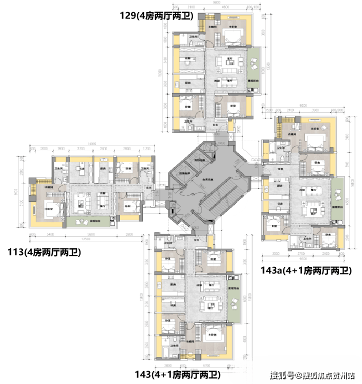 瞰山T4高层:建面约115-143㎡四房到五房