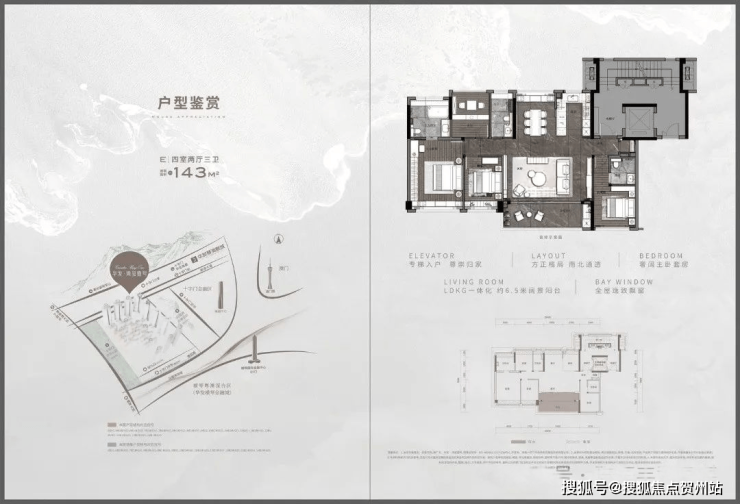 主卧室270°转角飘窗,景观视野开敞舒适