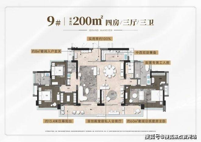 建面约200㎡大平层,堪称“终极豪宅”的王牌作品,完全0过道,实用率100%,比深圳湾1号的大平层还有高(普遍只有80%-85%),也更能感受到大开大合的大宅气场。