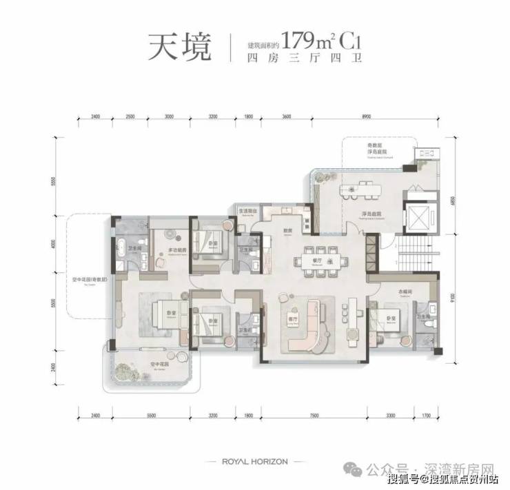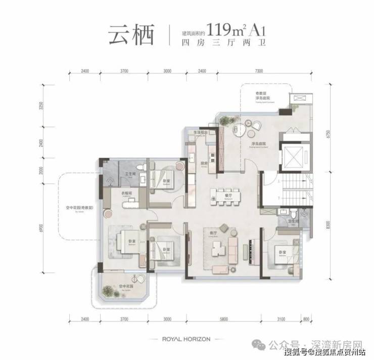 还有约300平酒店式水院、约600平水景、约2000平会客厅、宅间花园、多主题架空层空间、分龄段儿童乐园……