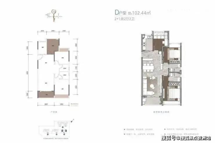 3栋17层,两梯四户,户型为69㎡两房一卫及102㎡三房两卫;