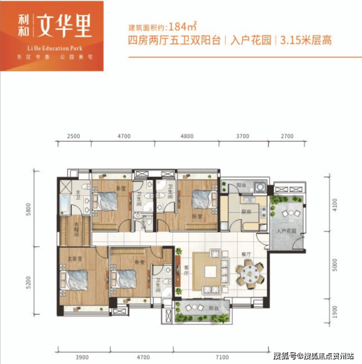 这款建筑面积约184㎡的四房五卫的设计,在中山也是难得一见的。 每个房间都是套房设计,而且同样有入户花园,3.15米层高,空间感十分大, 全屋LOW-E双层中空隔音隔热玻璃交付。