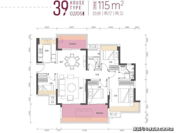115㎡四房两卫(36、38、39栋户型基本一致)