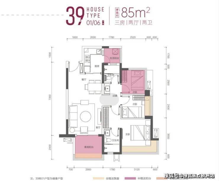85㎡三房两卫(36、38、39栋户型基本一致)