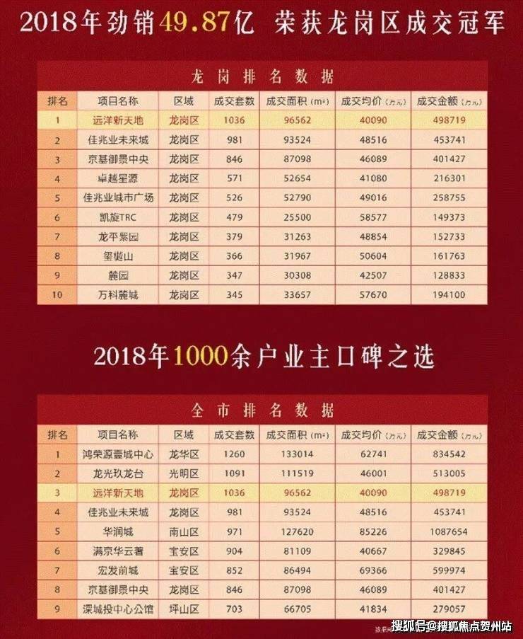 远洋新天地在2018年以1036的出售套数劲销49.87亿,荣获龙岗区成交冠军,在全市销售排名位列第三。