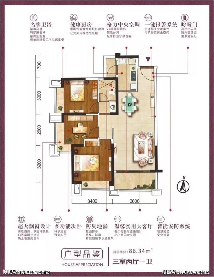 约86.34㎡,三室兩厅一卫
