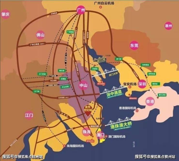 金帝世纪城项目地址位于广东中山坦洲毗邻香港、澳门、横琴自贸区,享受一小时粤港澳生活圈,度假在珠海、娱乐在澳门、购买在香港的轻松之旅。