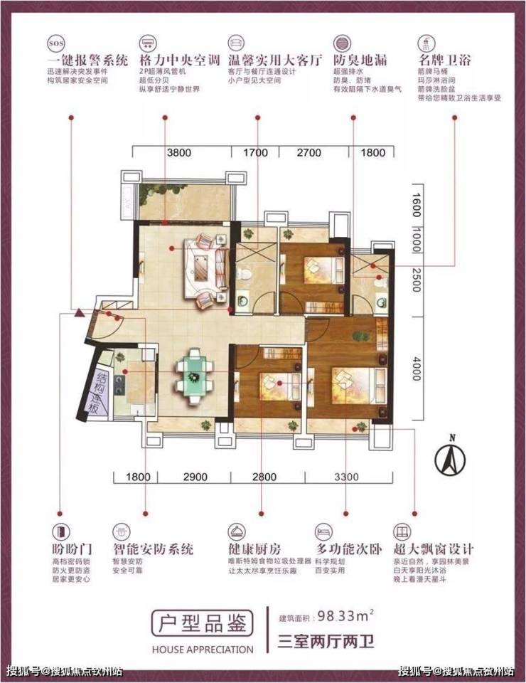 约98.33㎡,三室兩厅兩卫