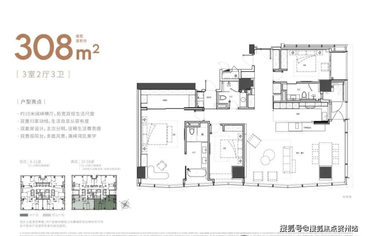 ◎公寓层数:【低区】8-19层、21-31层,【高区】33-44层、47-59层
