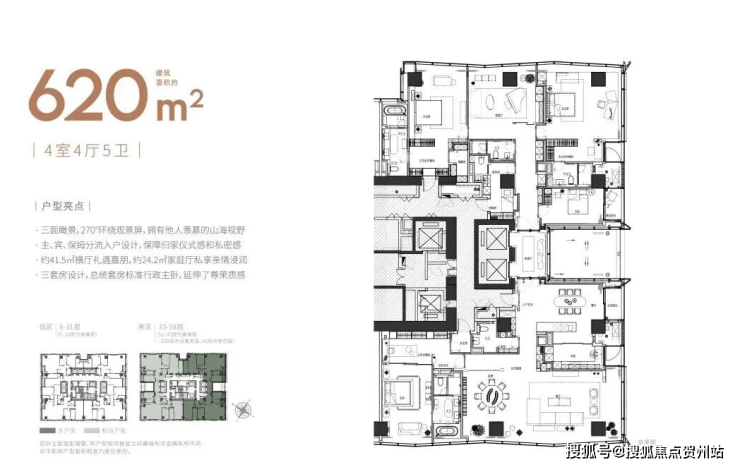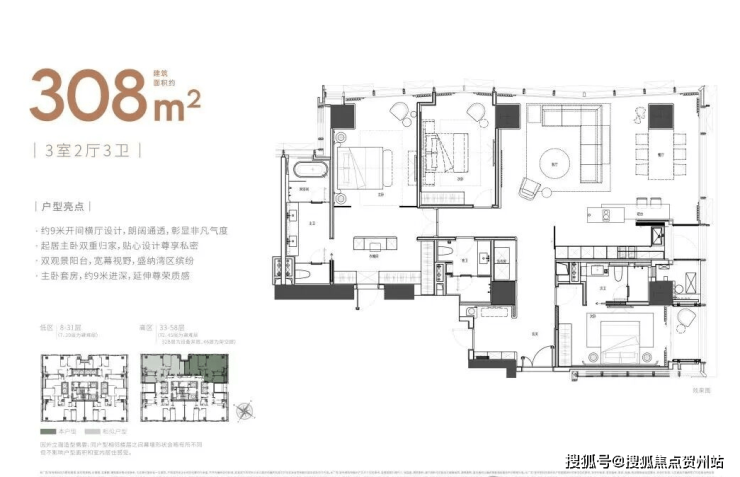 ◎户型建筑面积:约215-308-415㎡山海大平层