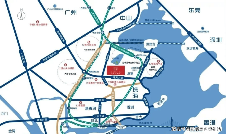 项目拥1站(珠海北站)、3轨(广珠城轨、深珠城轨、广州地铁18号线)、3桥(深珠通道、深中通道、港珠澳大桥)、2快线(兴业快线、金琴快线),湾区超级交通枢纽中心,约30分钟达前海,约1小时达白云机场。