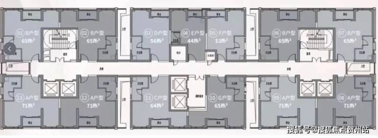 【舒适梯户】44-71㎡舒居1-2房,6梯13户,便捷通达