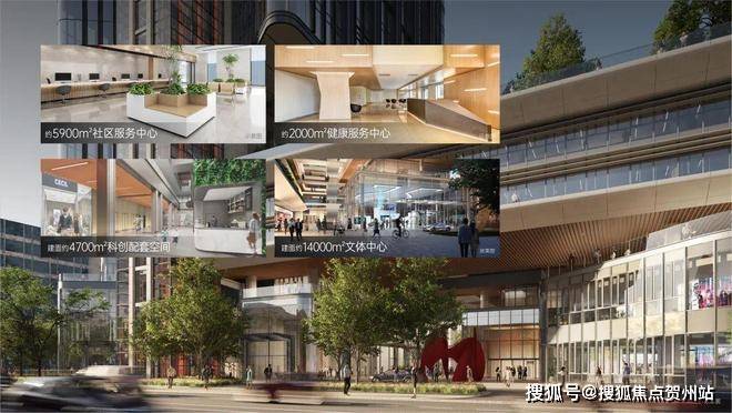 建面约4700m²科创配套空间、建面约5900m²社区服务中心、建面约2000m²健康服务中心于一体,毗邻建面约14000m²文体中心,营造多元都市生活新方式