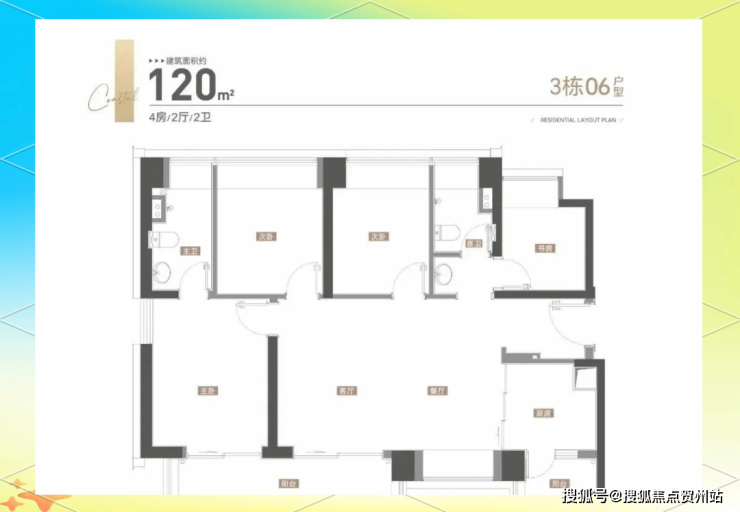 瀚府产品分布:3栋:4梯6户,层高3.1米,01-04户型100平3房2卫,05-06户型120平4房2卫