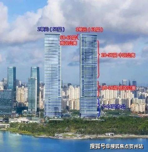 观景阳台:高区340平米户型,东面23米宽无敌海景视野(塔楼总观景面约46米)