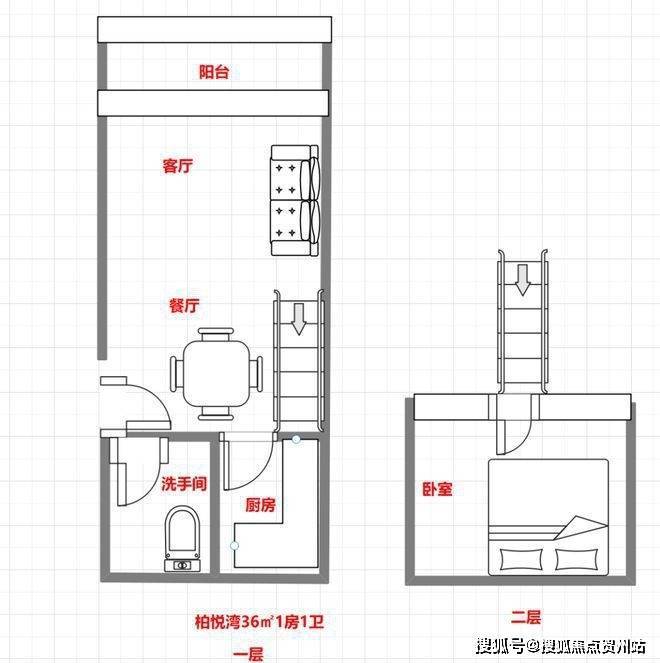 36㎡1房2庁1卫户型图