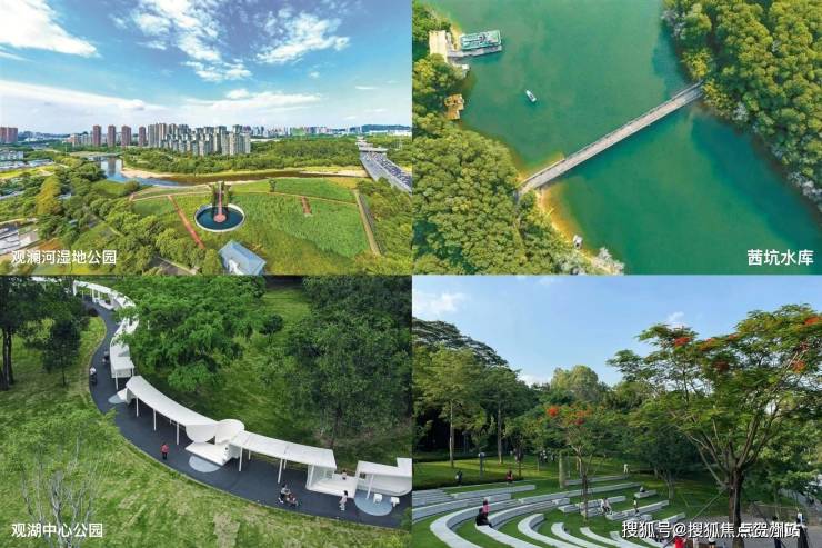 多座生态公园环绕,自然触手可及周边分布着观澜河湿地公园、茜坑水库、观湖中心公园、民法公园、九龙山公园等生态场所,不管是饭后散步、周末露营,还是日常运动,都能随时走进自然,呼吸新鲜空气,让生活更具舒适感与惬意感。