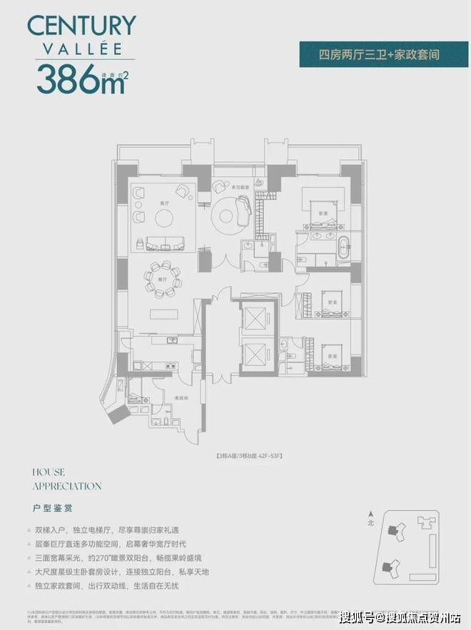 深业世纪山谷前两次都是公寓,现在住宅首发!还是定位相当高端的纯大平层,8梯3户,240㎡/280㎡配备两个独立电梯,380㎡双梯设计,实在任性!