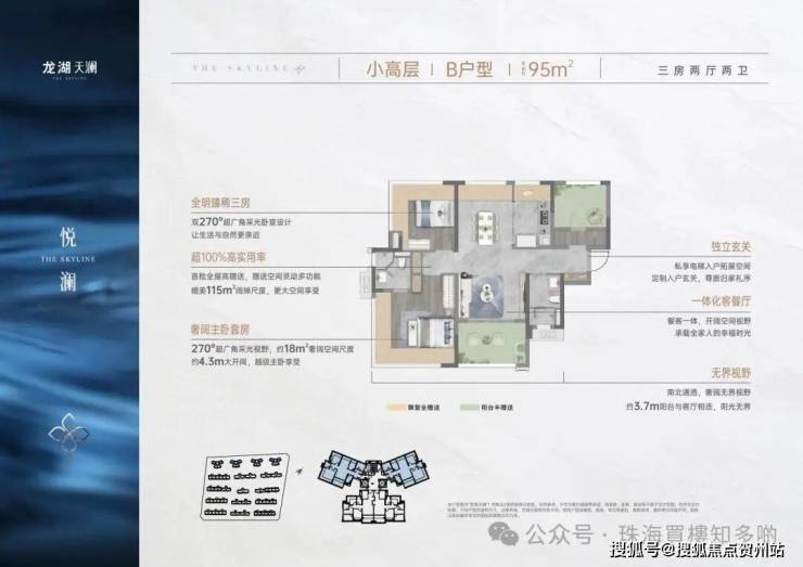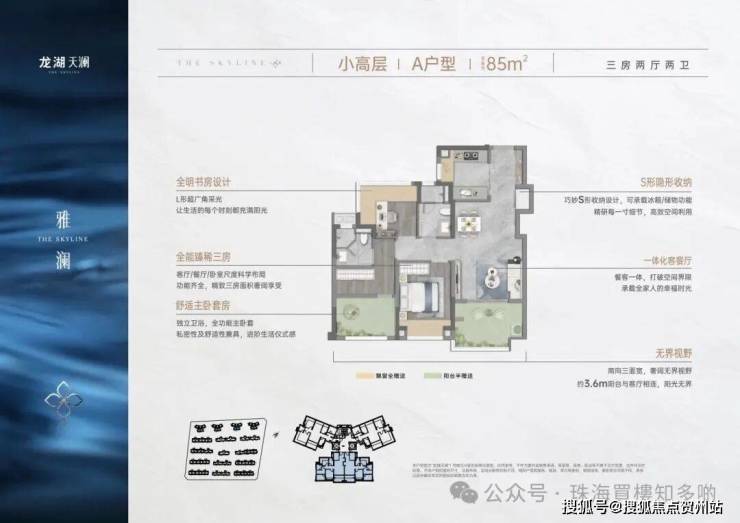 龙湖天澜,作为湖心新城首个新规后洋房社区,打造建面约85-144㎡奢境会所洋房,实用率超100%,刷新珠海户型标杆。