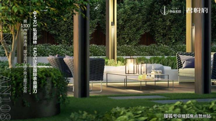【中山108·君悦府】小区内5萬㎡私家園林、1300㎡中央泳池、架空層主題泛會所、兒童樂園、康養健身區、活力跑道、寵物角等