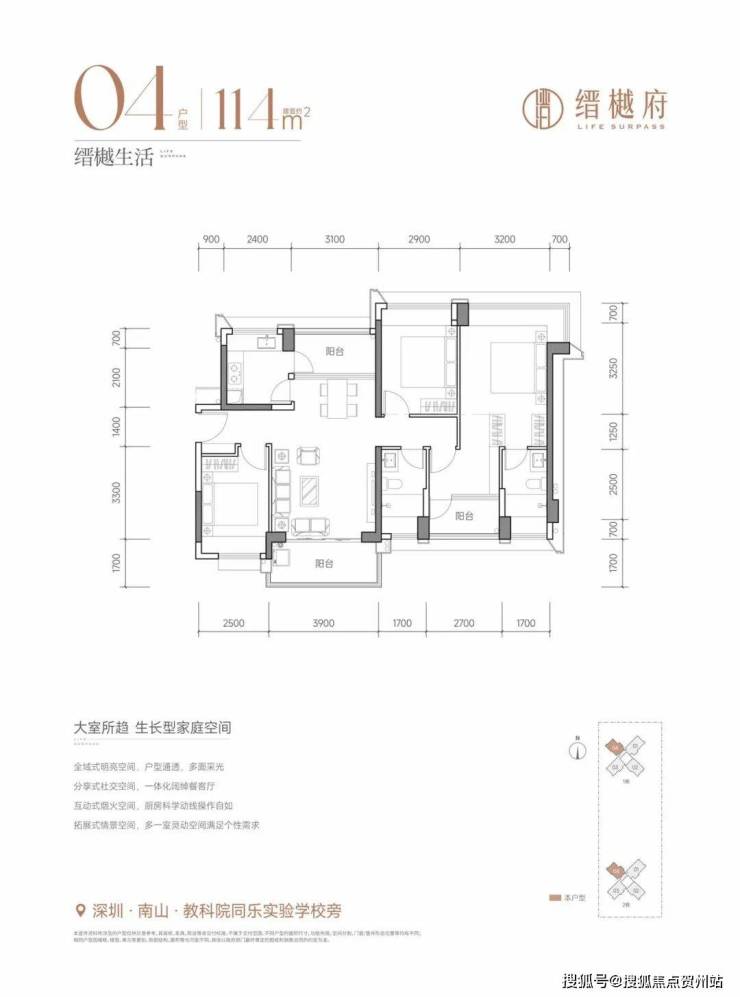 (1)114㎡4房2卫,折后总价832万,单价7.3万;【3梯4户,竖厅设计,西北朝向】