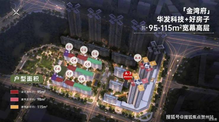 华发·金湾府,建面约95-115㎡3房-4房,高层单价1.85万-2.19万,高层总价165万起。