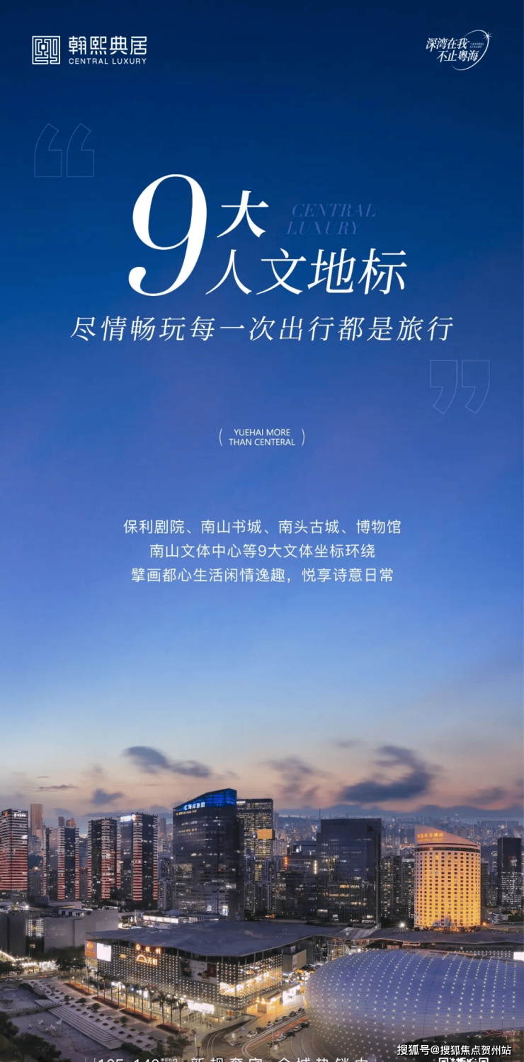 保利剧院、南头古城、南山图书馆、南山博物馆、粤海文体中心(在建中)、深圳湾文化广场(在建中)等九大文体峯境环抱,编织高阶人文生活图景。