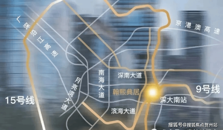 地铁9号线、15号线(在建中)交汇深大南站;9号线2站高新园、3站深超总、4站大前海区域;周边“四横三纵”主干道、双城际铁路及海空交通网络环绕,纵横驰骋,畅连全城。