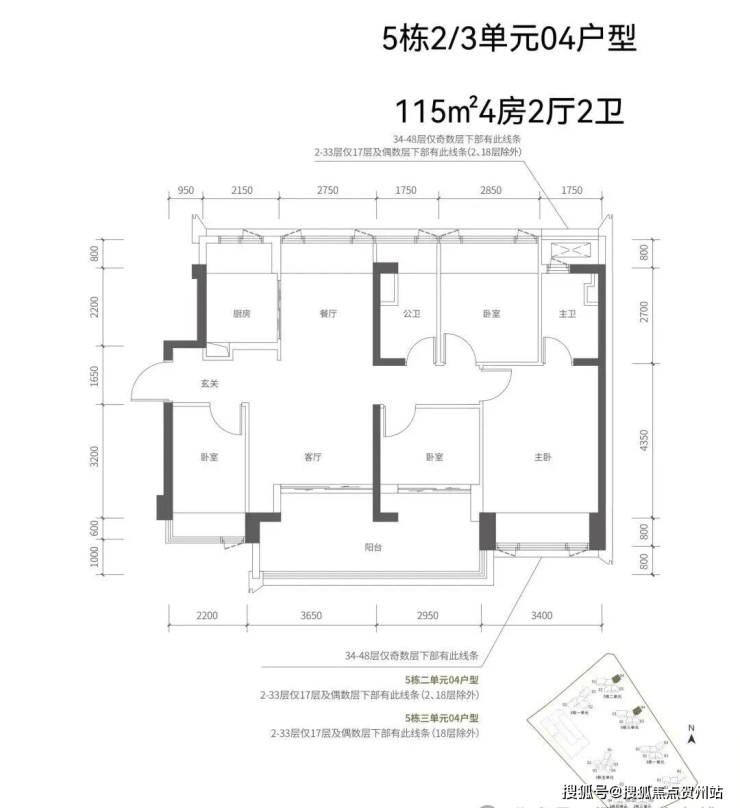 115㎡4房2厅2卫(90套单价6.8-7.01万/㎡,总价区间779-804万;