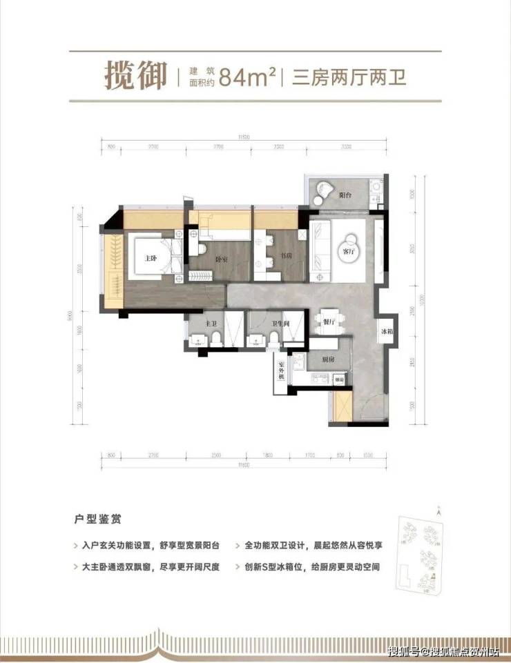 户型:建面约80-110㎡三到四房两卫