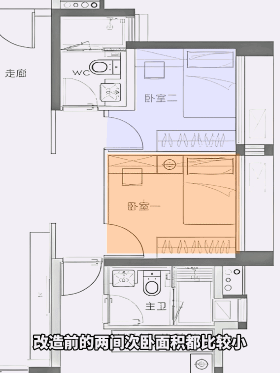 更妙的是,外置洗手台让次卧多了一块区域,能嵌入一整组衣柜,收纳空间又双叒叕增加了!