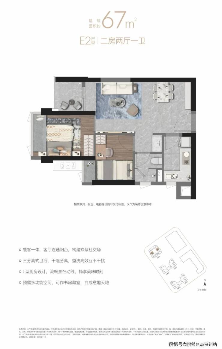 【E2户型67㎡二房两厅一卫】