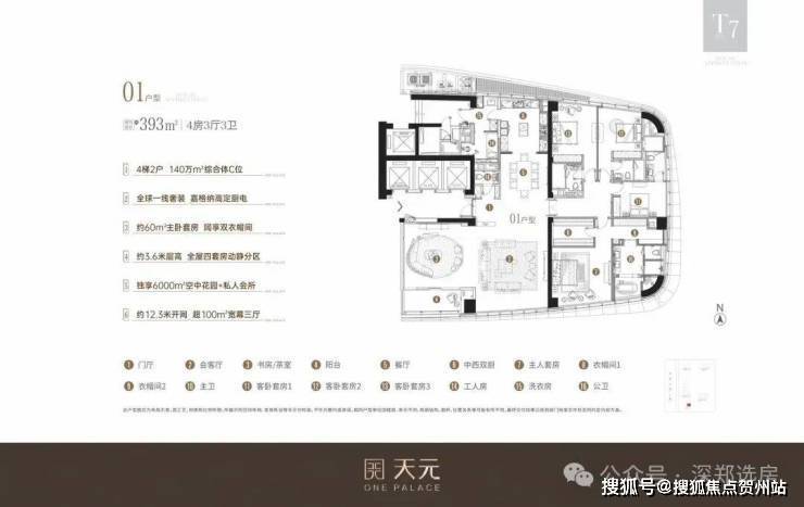 【T7-01户型鉴赏】约393㎡四房三厅六卫