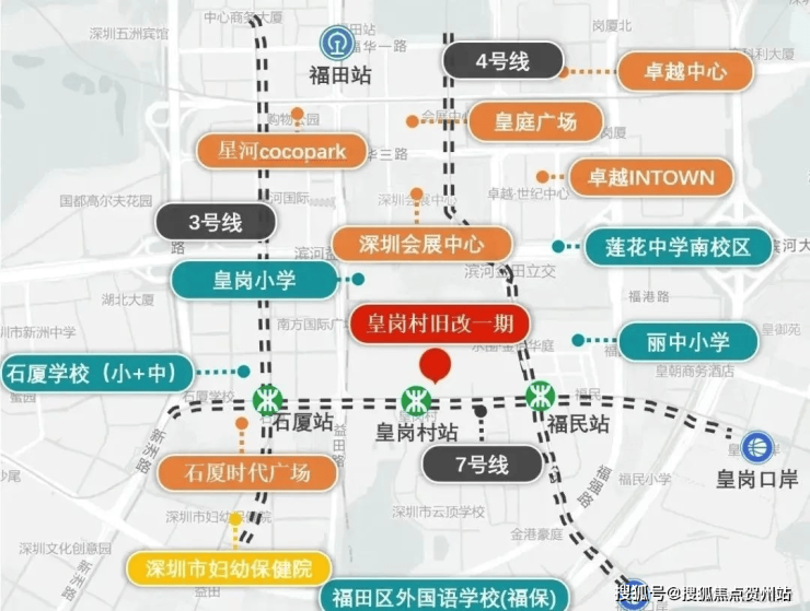 交通:紧邻地铁7号线皇岗村站。往西一站抵达石厦站,可无缝换乘3号线;往东一站到达福民站,能便捷换乘4号线和10号线。