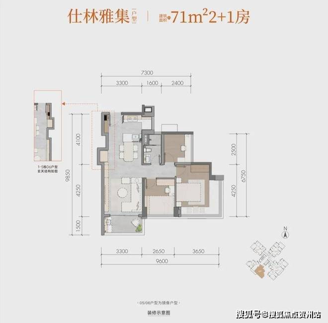 仕林雅集建面约71m²2+1房