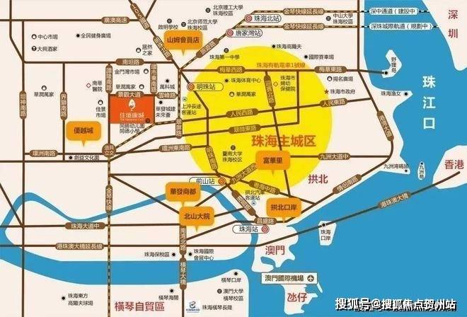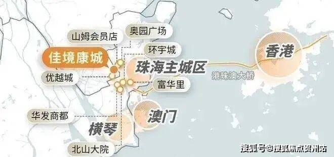 项目位于香港、珠澳、中山黄金三角的核心,相当于雄踞港中珠澳这座“超级大城”的中心,有着先天的区位优势,且直线距离港珠澳大桥入口、拱北口岸、横琴口岸,均在10公里左右。